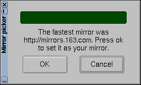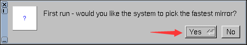 - 开启虚拟机进入桌面系统,点击下方的Apps图标,会提示首次运行是否选择最快的镜像,我们可以点击“Yes”,软件将自动检测最快的软件仓库镜像,国内一般会检测到mriior.163.com网易源。