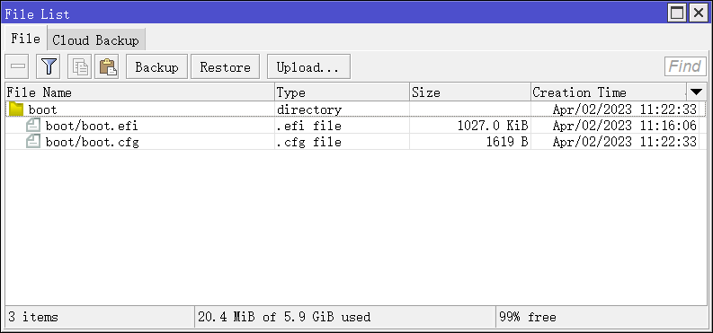 - 将boot.efi与boot.cfg上传到ROS软路由的boot文件夹中。