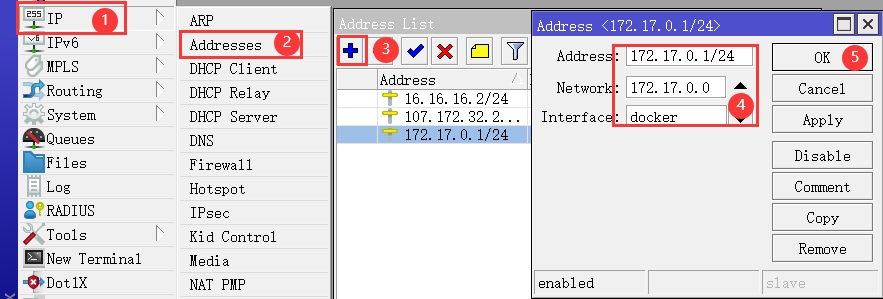 - 给docker桥接网络设置一个IP地址172.17.0.1/24,也就是docker网络的网关