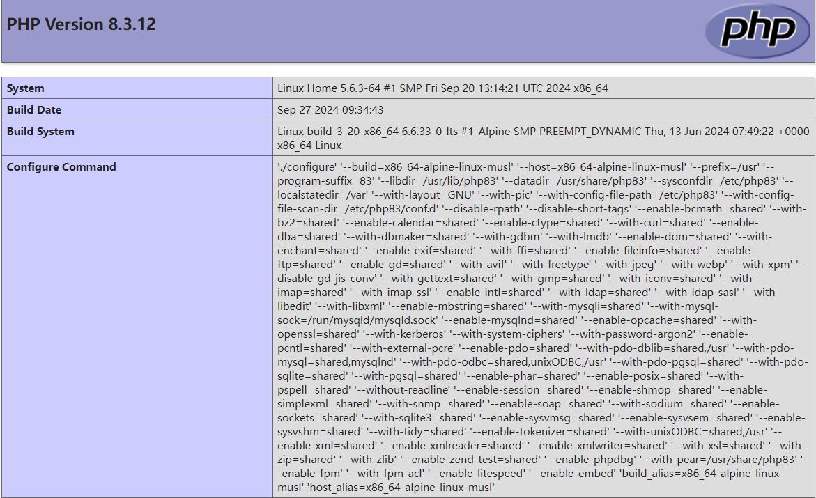 - 运行成功后,使用容器IP访问,应该可以看到phpinfo的内容