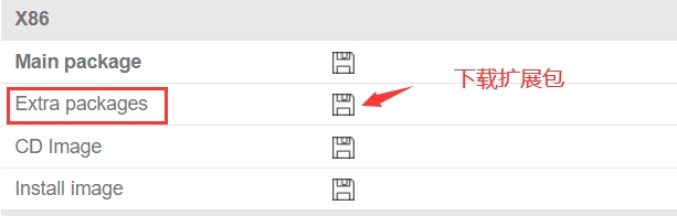 - 打开Mikrotik的官方网站:https://mikrotik.com/download,下载X86的扩展包