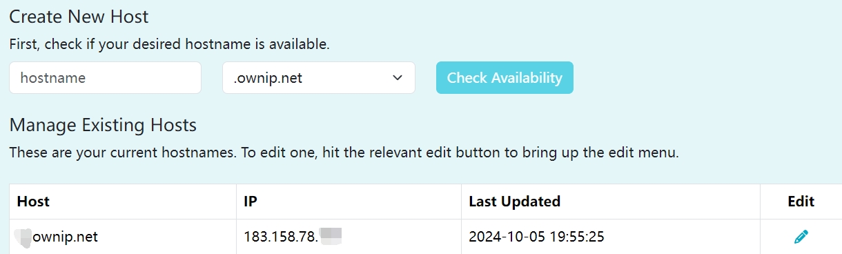 - 动态域名申请:在https://now-dns.com/网站上注册一个账号,登录后就可以创建免费的动态域名。