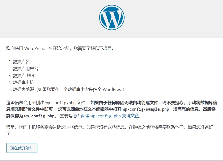 - 再次使用容器IP访问主页,就可以发现已经进入wordpress的安装界面