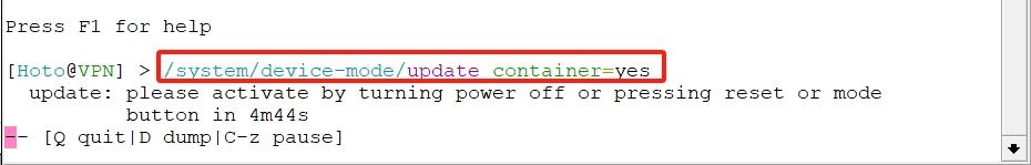 命令运行后,需要直接关闭ROS的电源,进行一次硬重启。(不能使用WINBOX中的重启或关闭功能)重启完成后,可以在终端中使用命令来查看容器功能是否已经开启。